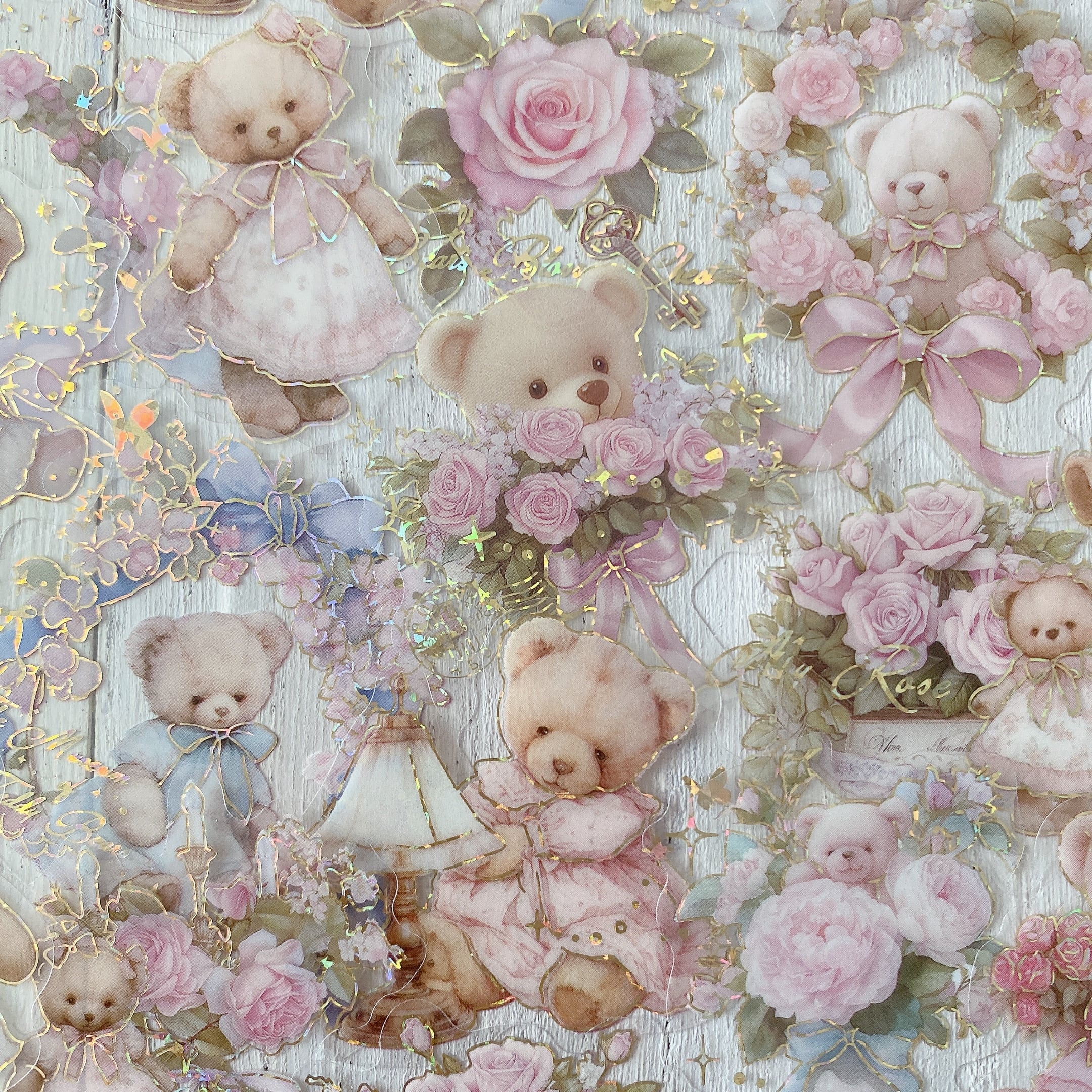 [ww27] Bears Blossam Chest 奶霜玫瑰 PETシール 30P 箔押し