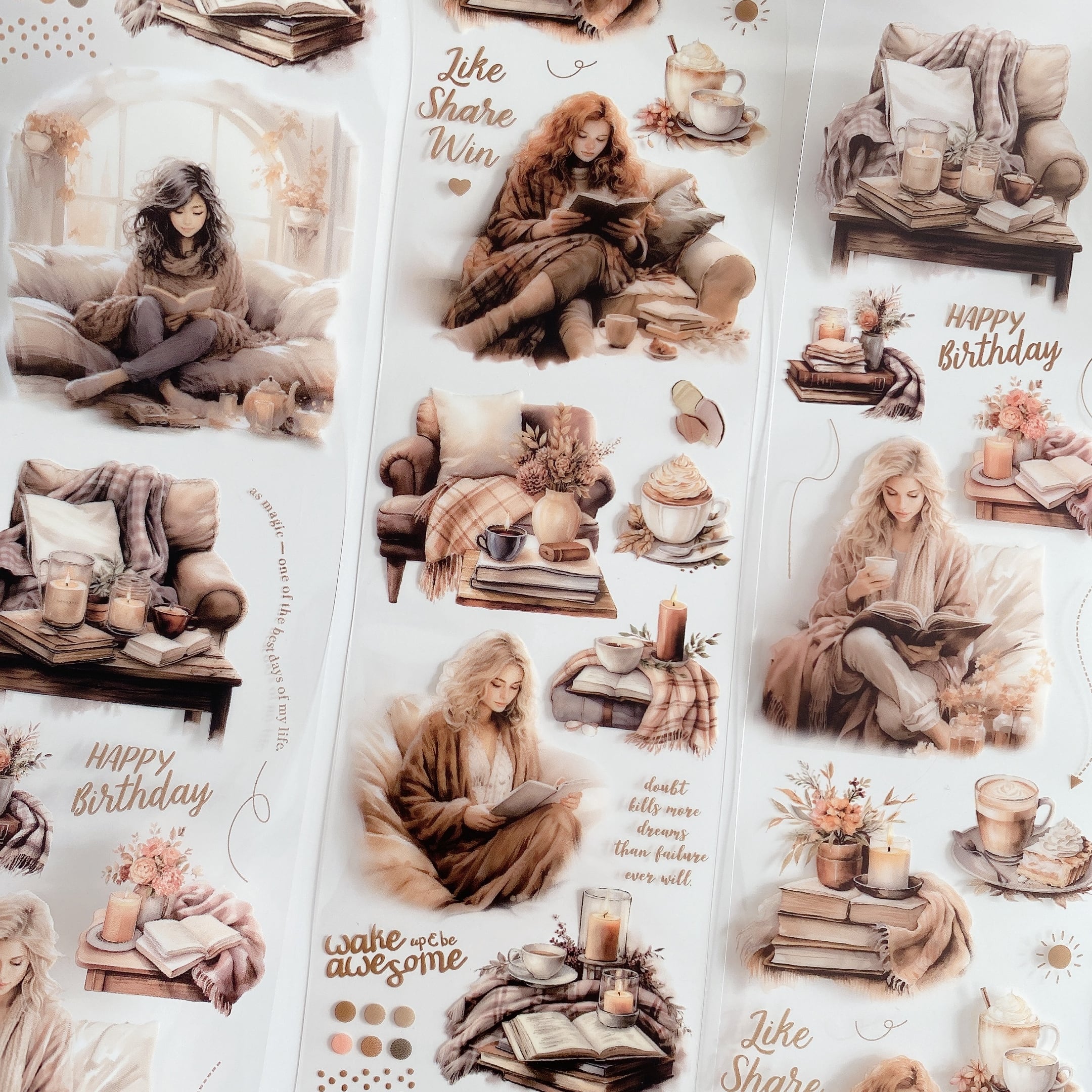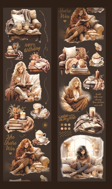 [xx42] 【切り売り】3ループ petシール 阅读时光シリーズ 午后咖啡