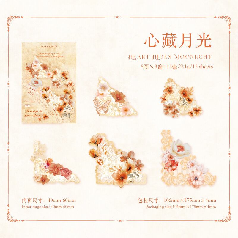 [ab7] 繁花一隅シリーズ 心藏月光 マステシール オレンジ 15P