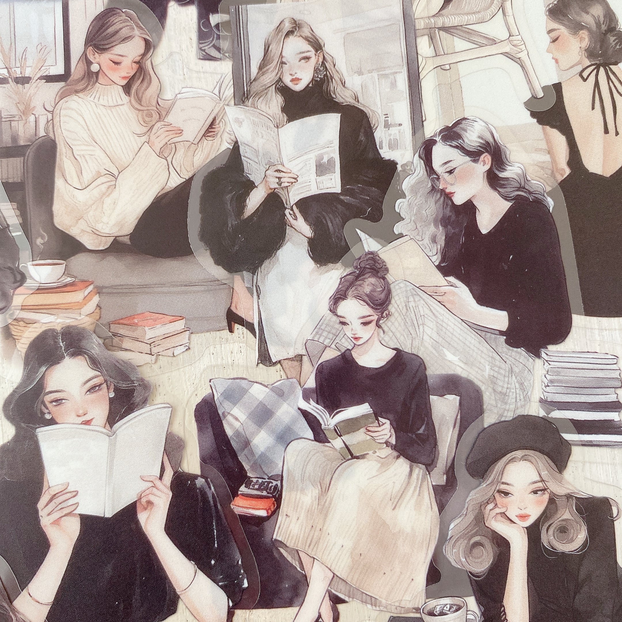 [ab23] 优雅读书时シリーズ 旧书回音 人物シール 30P