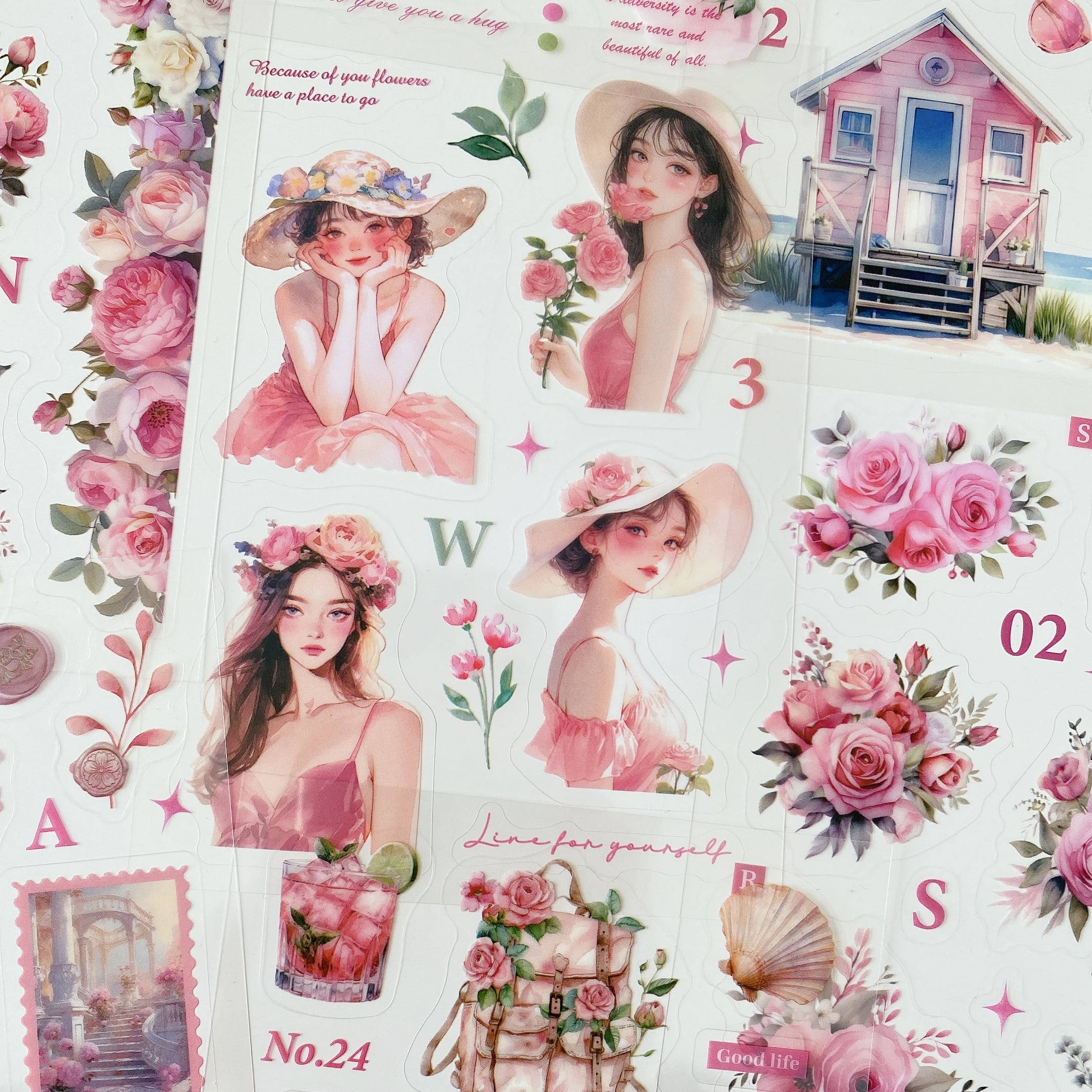 [ab38] ROMANTIC SEASON 海边日落 PETシートシール 10P ピンク
