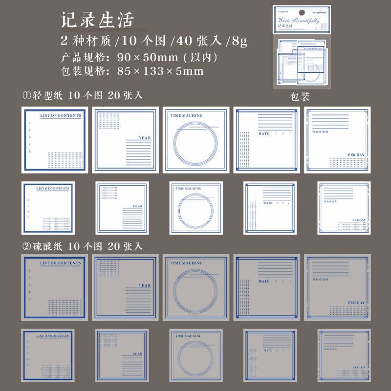 [ab46] 书写美好シリーズ 记录生活 素材紙 40P ブルー