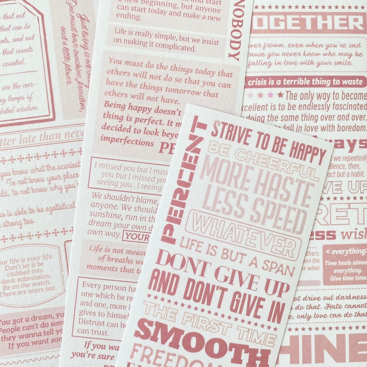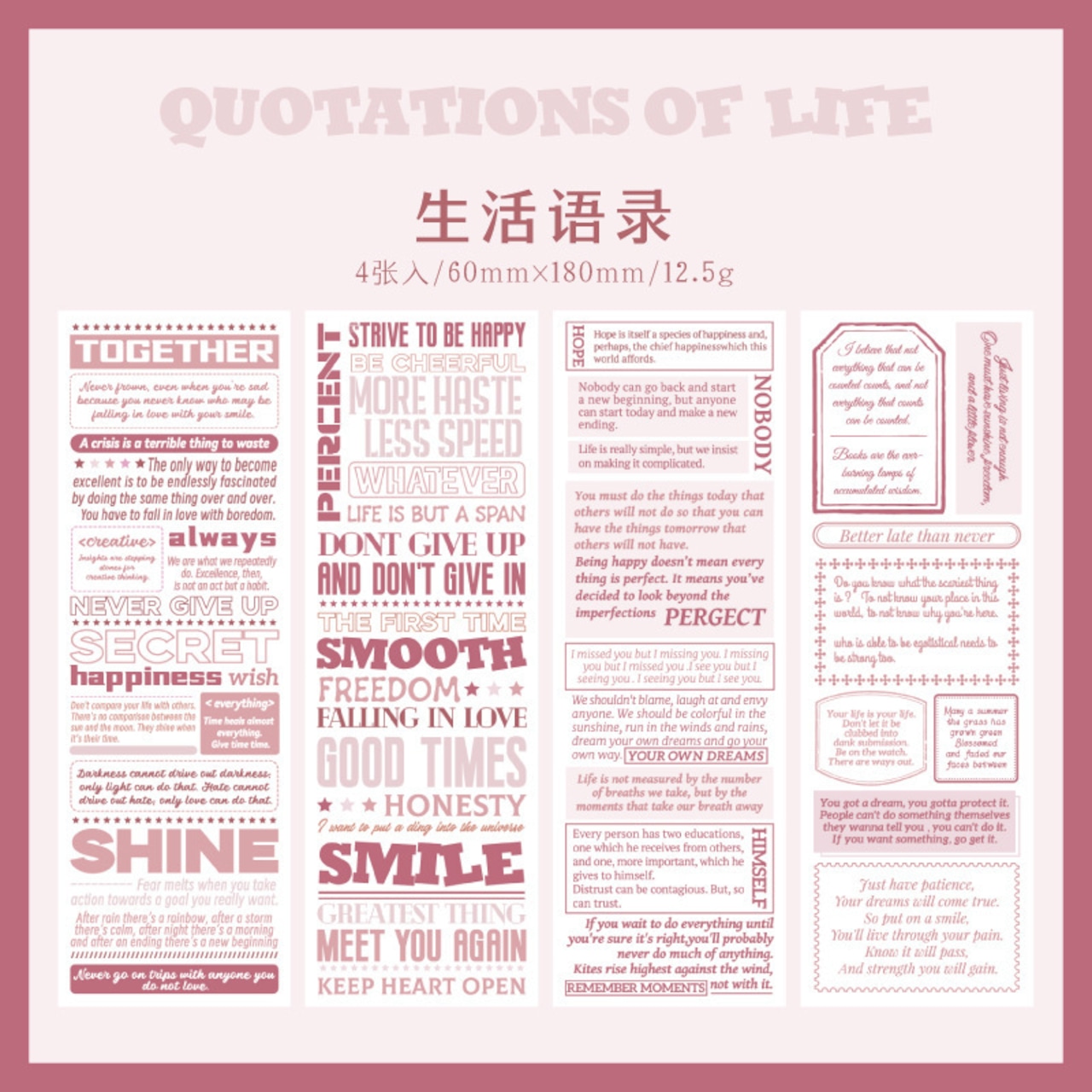 [nn60] シートシール 生活语录 ピンク マステ素材 4P