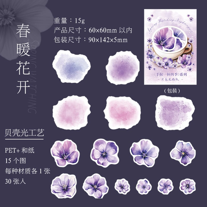 [pp54] 手握一杯四季系列 春暖花开 水彩 花シール 30P